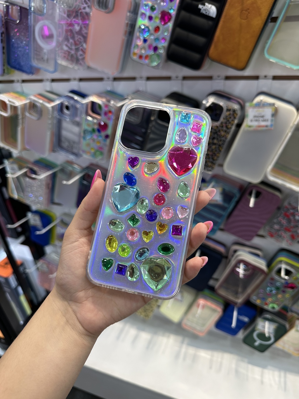 La funda es transparente, la parte tornasoladas es una filmina, de la podes dejar o sacar.